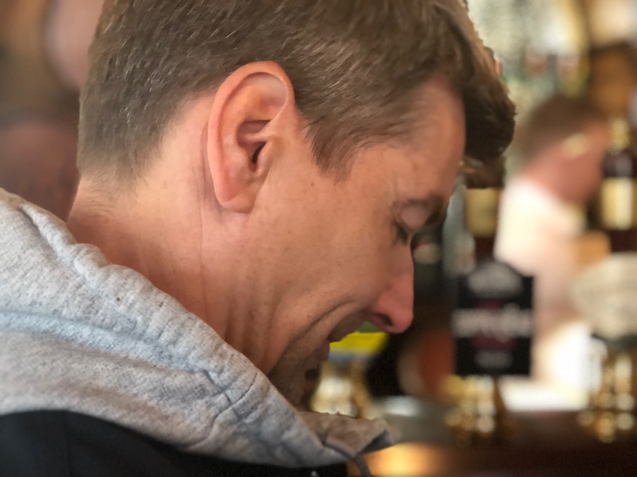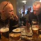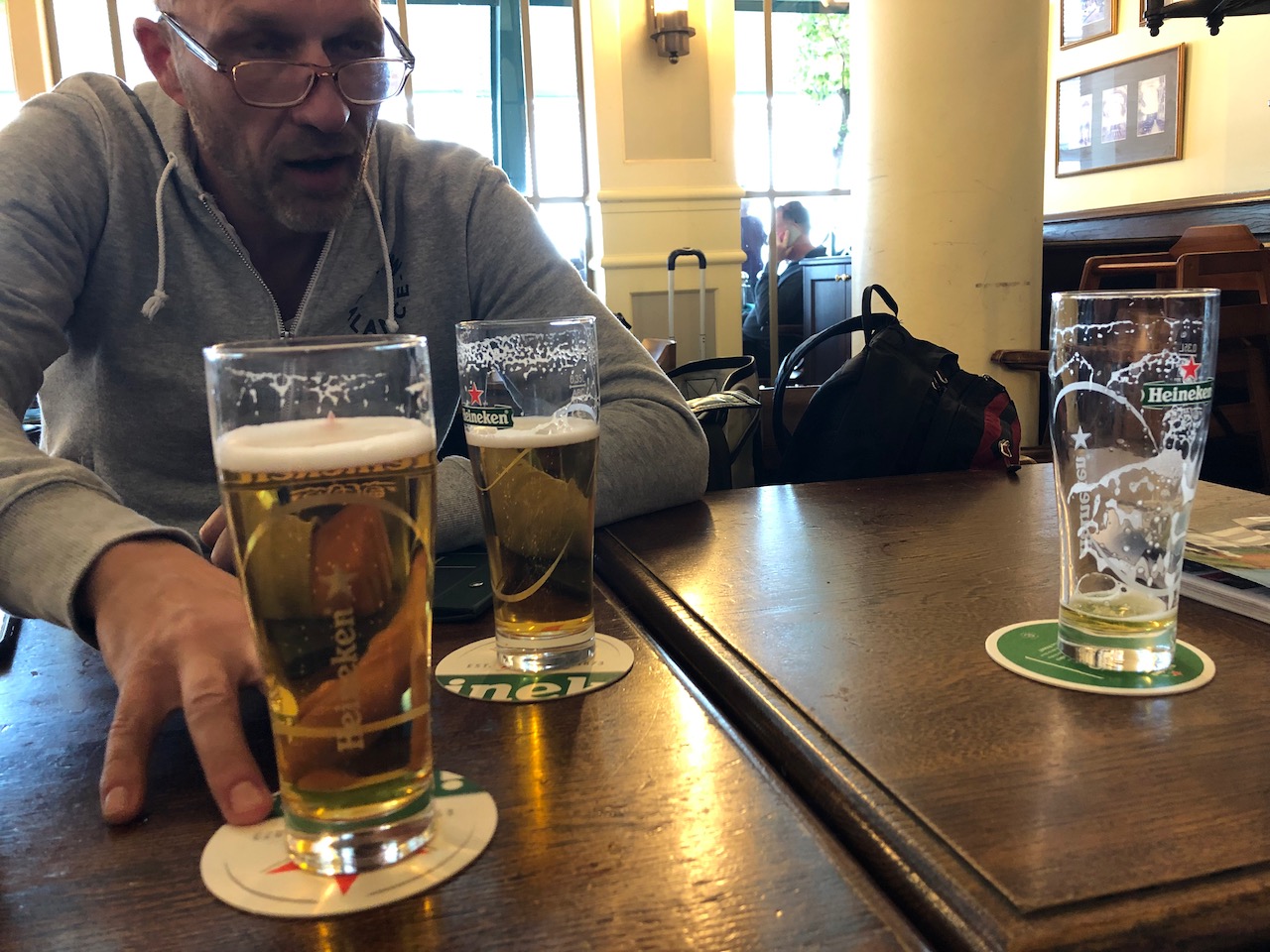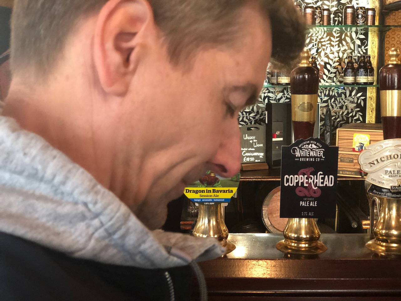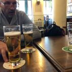Ältester pup mit ersten pint für fischi