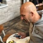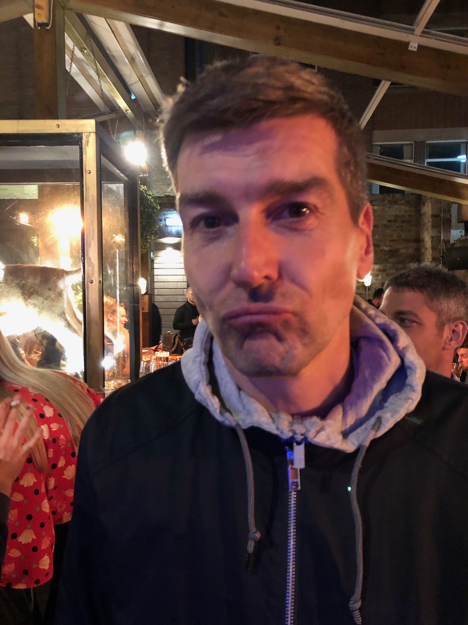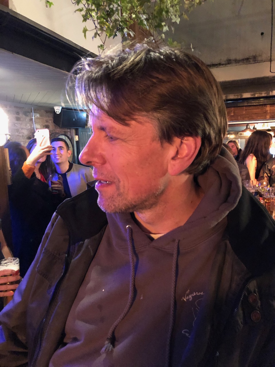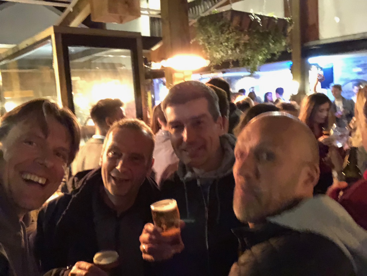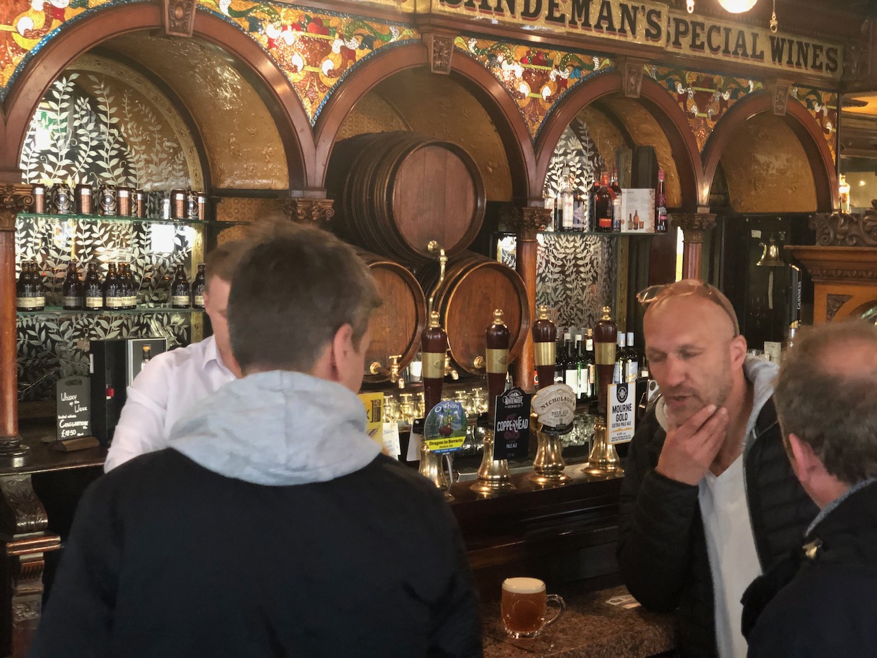Ältester pup mit ersten pint für fischi