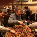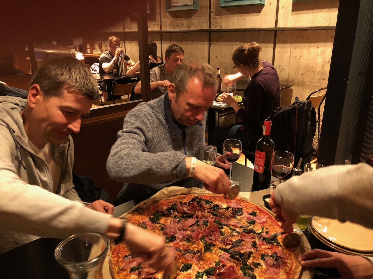 Riesen Pizza mit chianti